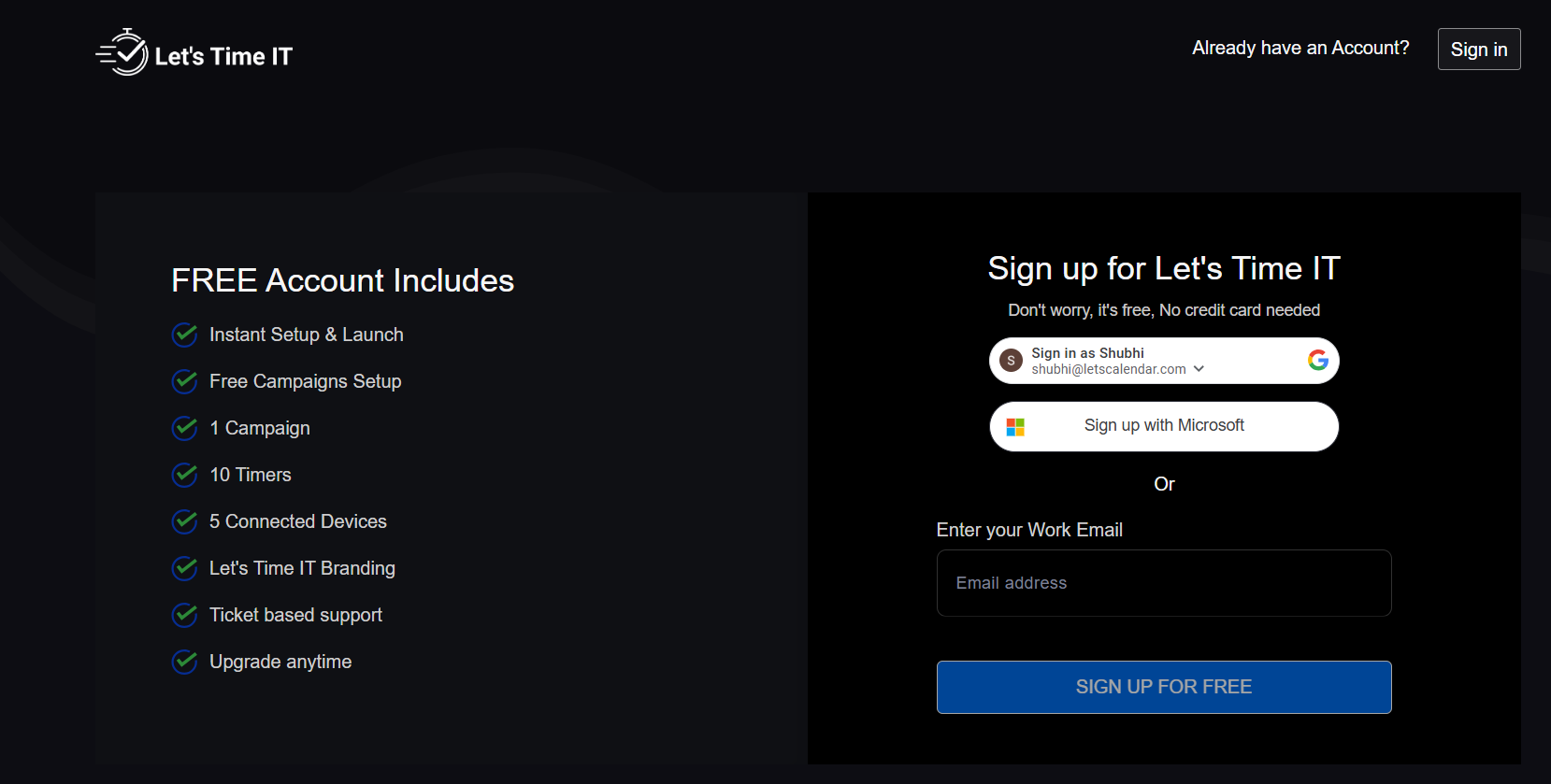 - Visit the Let’s Time IT platform, it’s free for all users! Anyone can create and launch countdown timers without any cost, making it easy to manage event schedules efficiently.